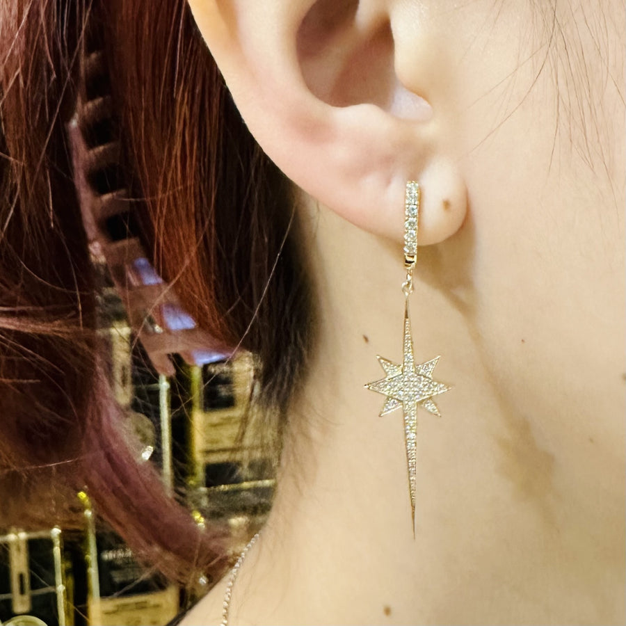 14 Karat Yellow Gold Diamond North Star Dangling Earrings 0.30ct